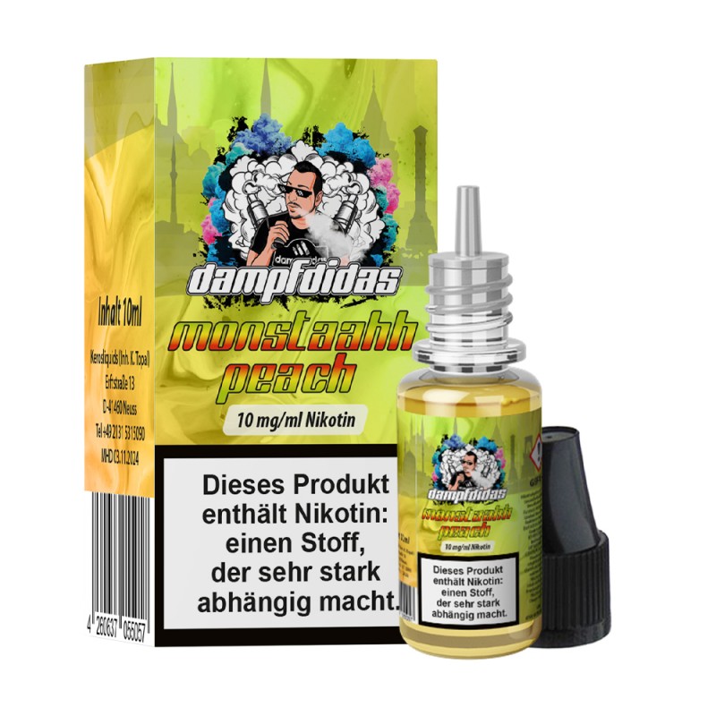 - 1x Dampfdidas Monstaahh Peach Nikotinsalz Liquid 10ml (je nach Variante)