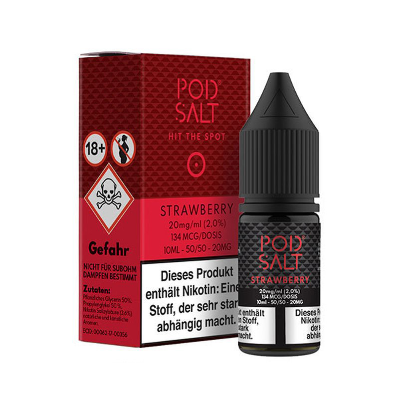 Produktinformationen "Pod Salt Strawberry Nikotinsalz Liquid 10ml"     Mit einem Nikotingehalt von 20mg/ml ist wenig Dampf erforderlich um den Nikotinbedarf zu befriedigen. Das Nikotinsalz ermöglicht einen viel sanfteren Throat Hit als regulär. Diese Kombination ist optimal für Podsystem und MTL-Verdampfer!