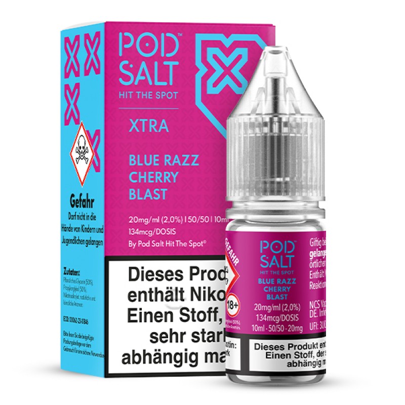 - 1x Pod Salt XTRA Blue Razz Cherry Blast Nikotinsalz Liquid 10 ml (Je nach Variante)
