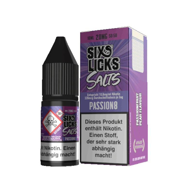 - 1x Sixs Licks Passion8 Nikotinsalz Liquid 10ml (Je nach Variante