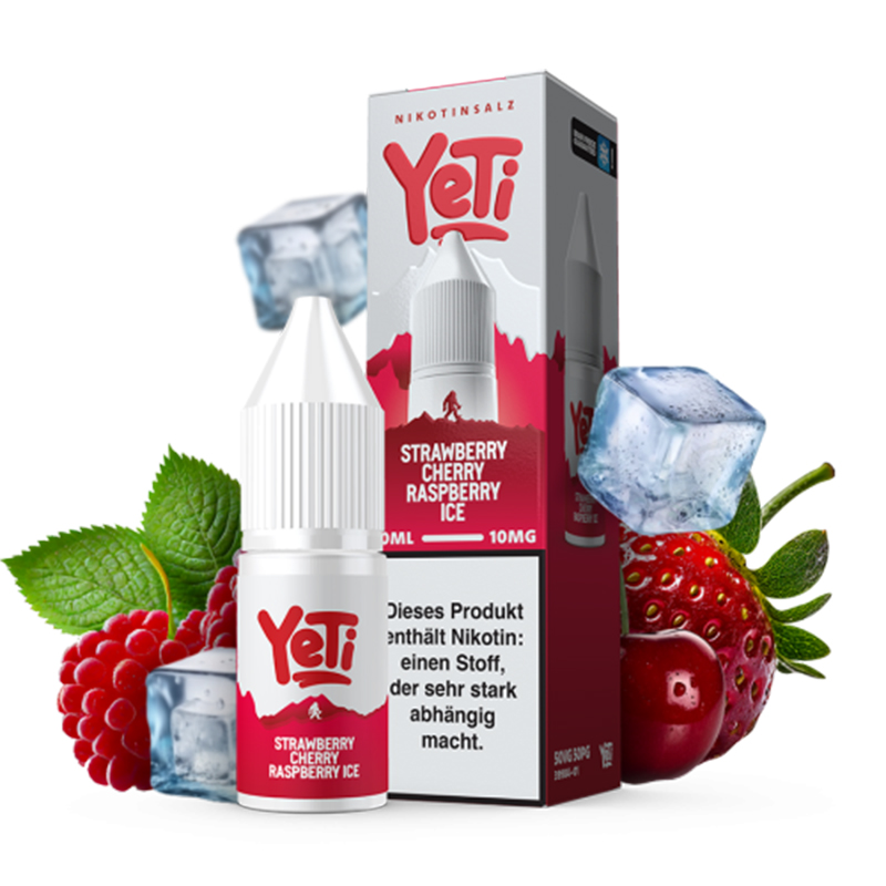 - 1x Yeti Summit Strawberry Cherry Raspberry Ice Overdosed Nikotinsalz Liquid 10 ml (Je nach Variante)